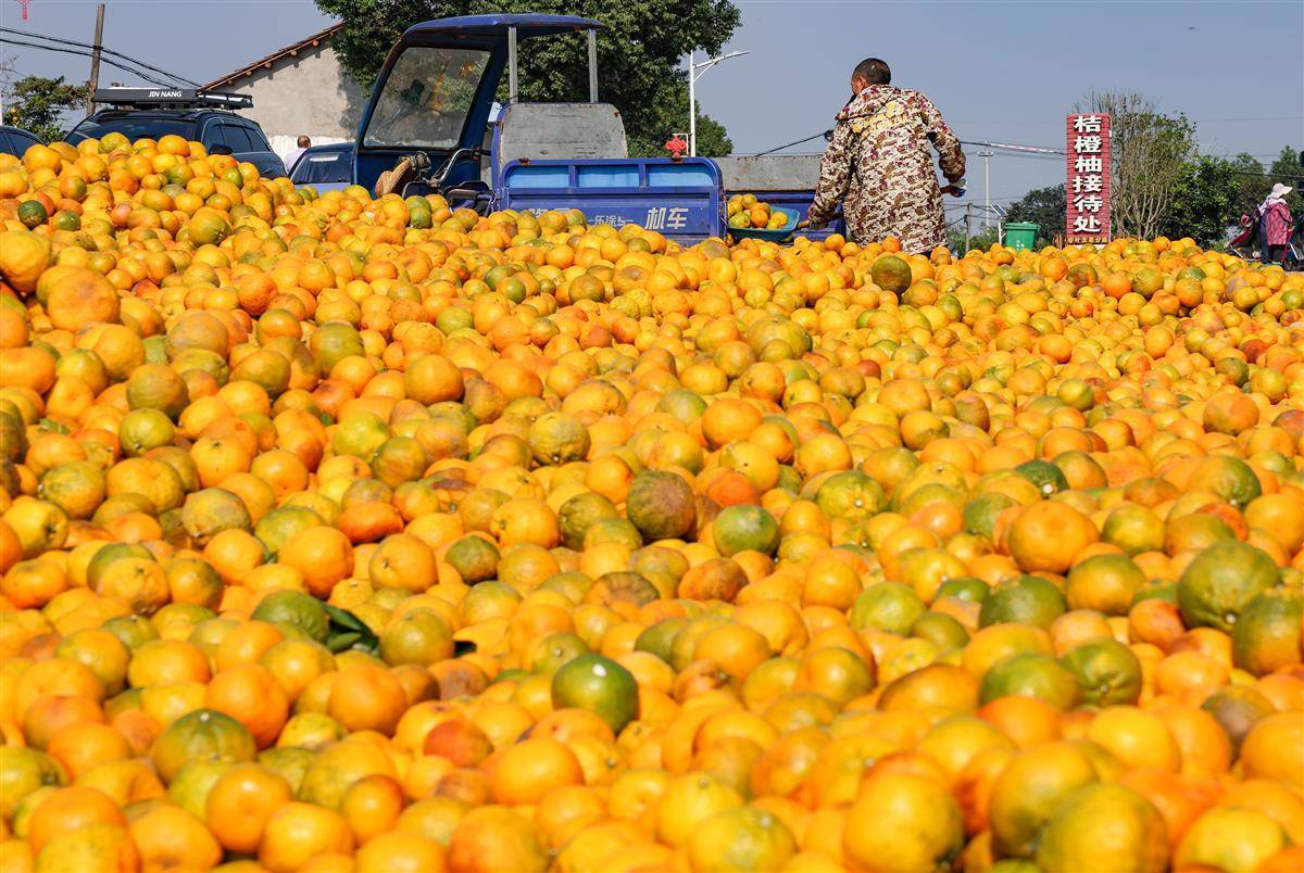 张庄铺镇随处可见金黄色的柑橘丰收。
