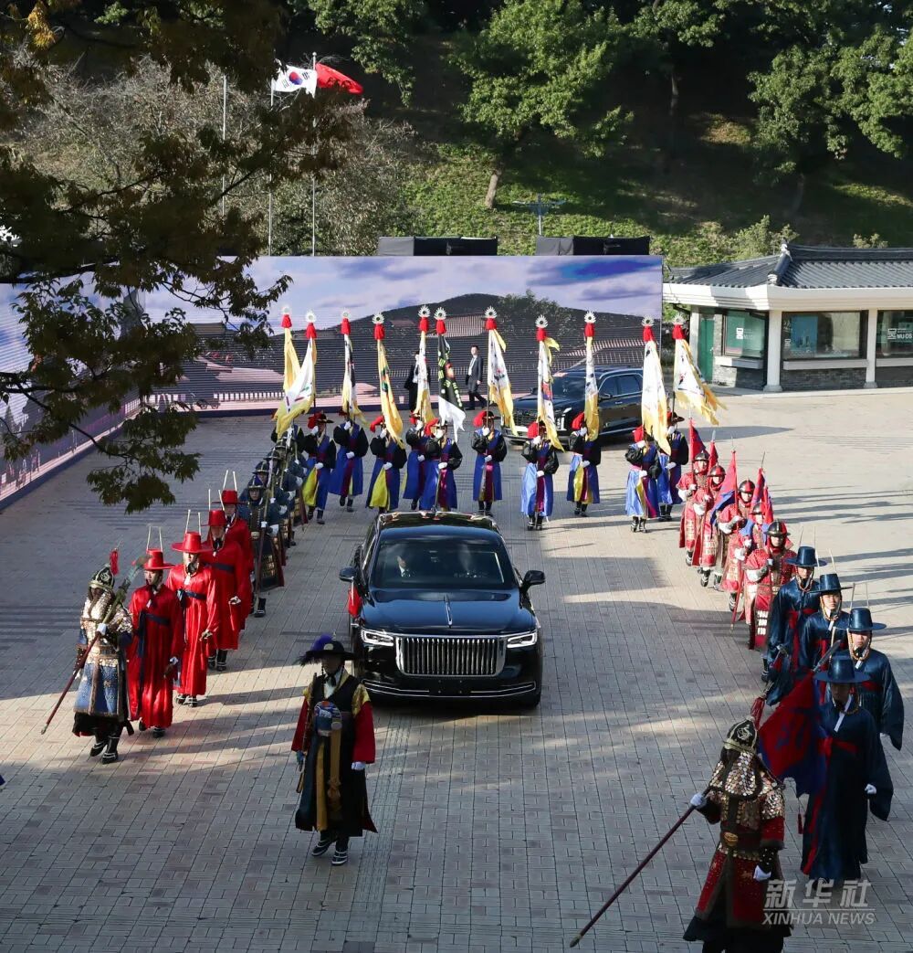 当地时间11月1日下午,韩国总统李在明在韩国庆州举行节日仪式,欢迎习近平主席对韩国进行国事访问。