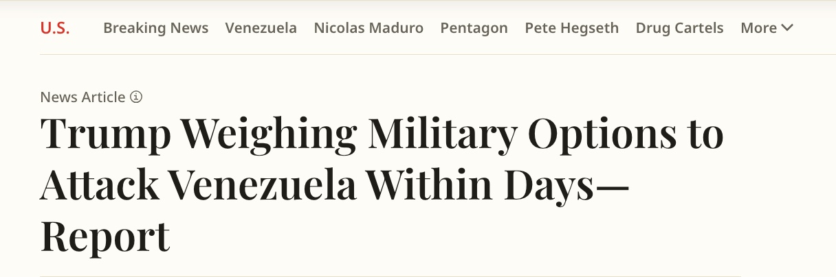 - 2025/11/16北美观察丨航母逼近,白宫讨论战争。美
