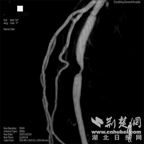 当他来到国药东风总医院就诊时,血管造影显示了一个残酷的事实——郝大爷的左侧腘动脉狭窄90%,双侧胫前动脉被切除。这就是他剧烈疼痛和行走困难的根源。
