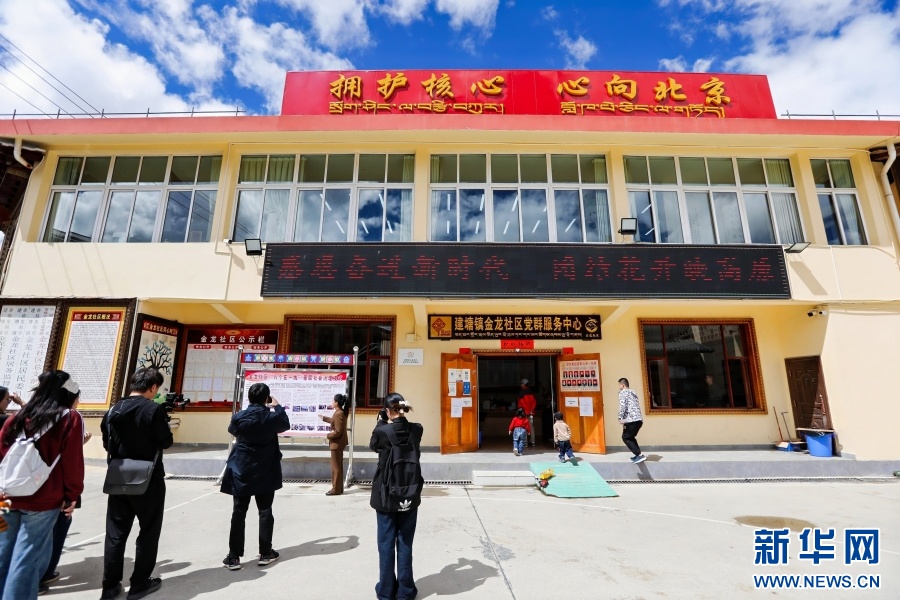 参观者在迪肯藏族自主县文化中心观看展览(9月27日拍摄)。发表于Xinhunet(Gao Chenchen拍摄的照片)